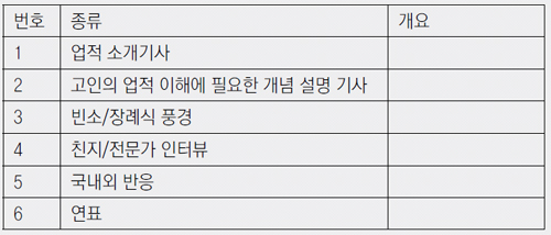 부고 기사를 꾸준히 스크랩해 보세요. 어떤 사람들이 부고 기사의 주인공이 되는지 따져보고 기사의 특징이나 시대별 부고 기사의 흐름 같은 것도 찾아낼 수 있을 겁니다.