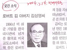 오늘 아침 「한겨레신문」을 보다가 눈에 띄는 말 한마디를 만났습니다. 로버트 김 씨 아버지가 세상을 떠났다는 소식을 알리는 짧은 기사에서 만났습니다. 「한겨레신문」은 이 기사를 내보내면서 ‘궂긴 소식’이란 말을 씁니다.
