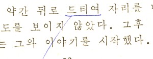 『옥중일기』에서 만난 ‘드티다’는 ‘양보’를 뜻하는 말입니다. 이때 쓴 ‘드티다’는 우리가 전철에서 자리에 앉을 때 옆사람에게 자리 좀 내 달라고 하는 말로 쓰기에 알맞지 않나 싶어요. 어떤가요? ‘드티다’라는 말을 되살려서 쓰면요?