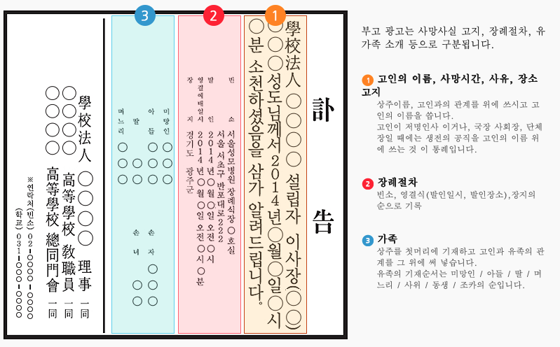 부고 광고는 짧은 장례기간에 고인의 장례소식을 신속하고 널리 알릴 수 있는 가장 효과적인 방법입니다.