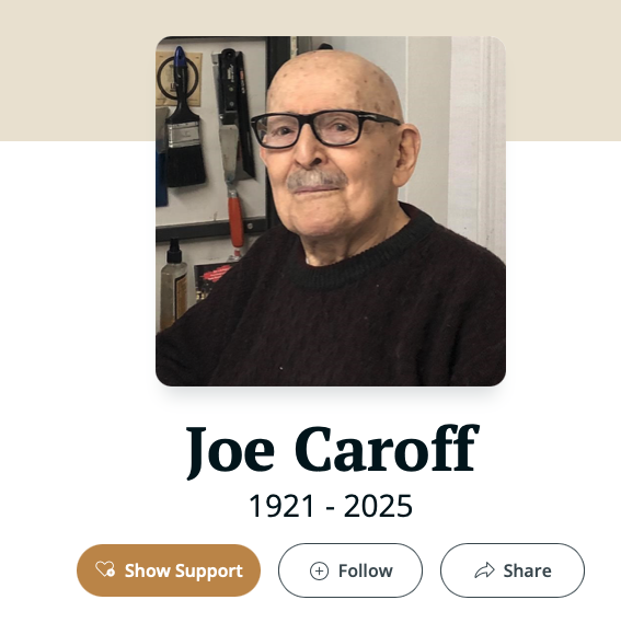 Graphic designer Joe Caroff died August 17, 2025, at his home in New York City at the age of 103.