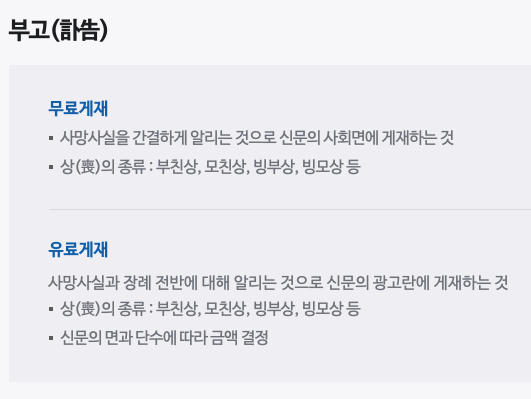 사망사실과 장례 전반에 대해 알리는 것으로 신문의 광고란에 게재하는 것