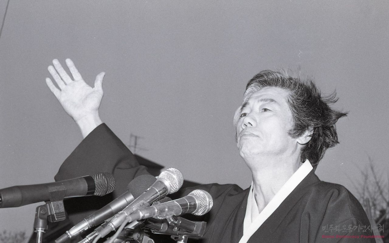 장준하 선생은 의문사를 당했으나 백기완 선생은 멈추지 않았다. 10·26 사태 이후 신군부에 끌려가 고문당하면서도 시를 썼다. 가택 연금된 상태에서도 거리로 나와 민주주의를 외쳤다. 1987년 대선에 출마해 양김 단일화를 촉구한 것은, 그에겐 반독재 투쟁의 연장선이었다. 백기완 선생은 최근까지도 “그때 내 말을 들었으면 군사독재도 청산됐을 것”이라고 했다. 뜻한 바를 이루지 못했지만, 백기완 선생은 그다음에도 거리에서 계속 싸우자고 했다. 그 시절 백기완 선생의 포효에 정신이 번쩍 들었다는 중년이 지금도 많다.