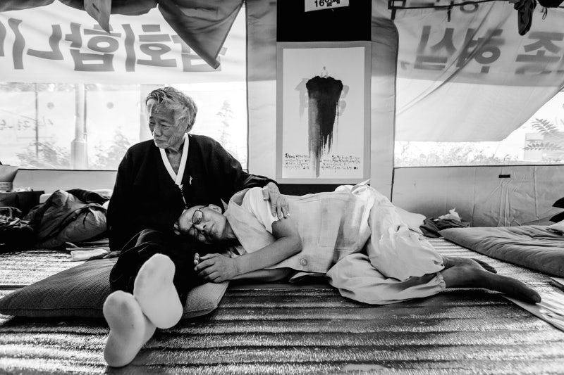 권력이든, 정치권이든, 시민사회든 이상하게 종교의 잘못에는 모르쇠로 일관한다. 종교가 유형무형의 힘을 다 가지고 있기 때문일 것이다. 그러나 백기완 선생님께서는 그런 고정관념마저 훌쩍 뛰어넘으셨고 오로지 진실과 정의를 기준 삼아 세상을 보고 걸음을 내딛으셨다. 조계사 앞에서 조계종 적폐청산을 위해 단식농성을 하고 있을 때도 수시로 찾아와 응원을 아끼지 않으셨다. 백 선생님께서 단식천막을 찾아오신 날은 나도 응석받이가 되어 선생님의 무릎을 베고 누워 쉴 수가 있었다.