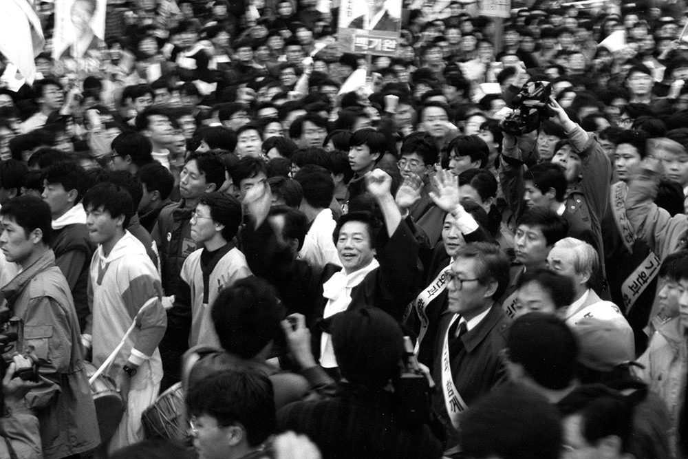 이 폭력은 왜곡이고, 시대변화를 읽지 못한 몰역사적인 것이기도 하다. 87년 대통령선거에서 선생은 군부독재정권 종식을 주장하며 김대중과 김영삼의 분열을 막기 위해 후보를 사퇴한 바 있다. 분열책동자라는 비판은 분열을 막기 위해 애쓴 선생의 노력을 왜곡하는 주장이다. 87년의 이른바 민주진영의 분열은 91년 김영삼과 노태우의 민자당이라는 보수대연합으로 퇴행했다. 그리고 97년 김대중과 김종필의 연합으로 퇴행의 모습은 진화했다.