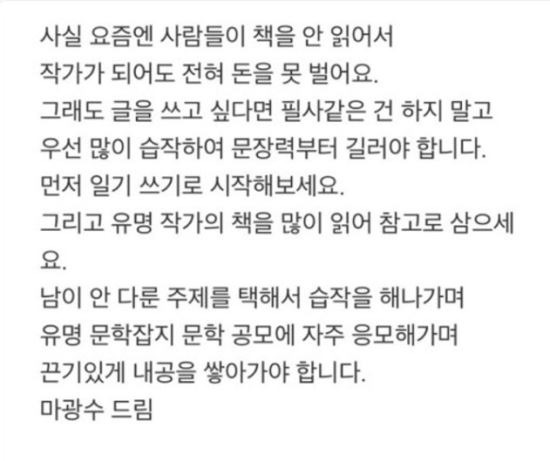 지금은 다른 길을 가고 있지만, 나는 군 시절 당시만 해도 작가를 꿈꿨다.