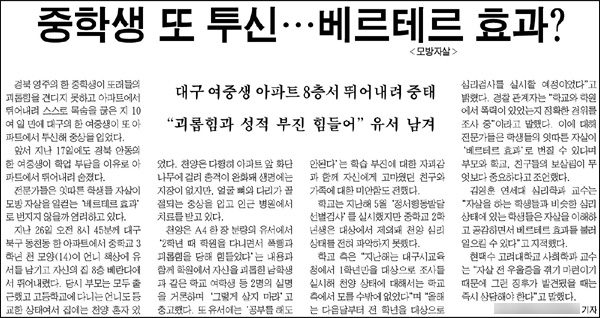 한 사람의 극단적 선택이 다른 선택을 이끌어내는 ‘베르테르 효과’는 보도가 지닌 무게가 결코 가볍지 않다는 점을 다시 생각하게 한다.