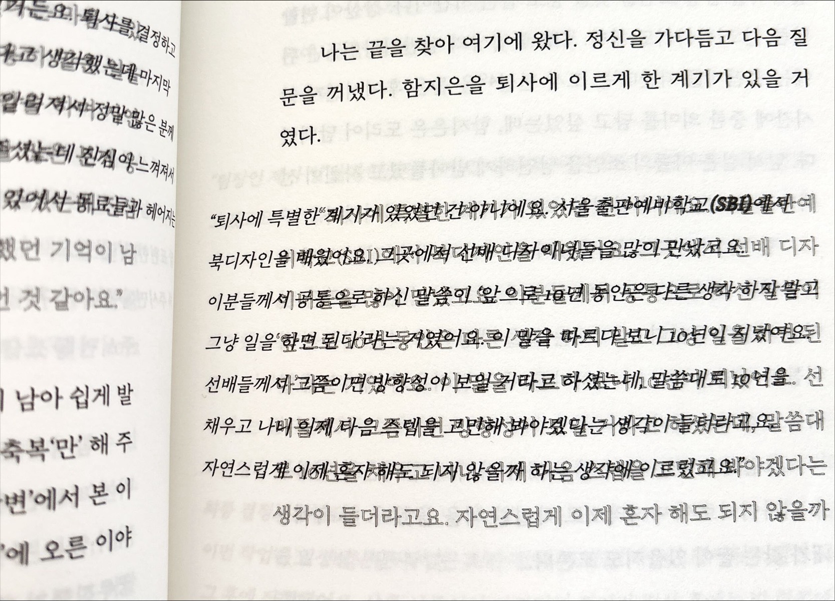 “책은 결국 기록이예요. 사라지지 않게 붙잡는 일. 그게 제일 중요하다고 생각해요.”