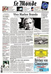 르몽드는 일요일과 월요일의 합쇄본인 지난 4·5일 자 1면 톱기사에서 이 관행을 깨고 사진을 실었다. 바로 1일 세상을 떠난 미국 태생의 배우 말론 브랜도의 사진이었다. 1면 톱기사의 제목은 ‘비바 말론 브랜도(말론 브랜도 만세)’였다.