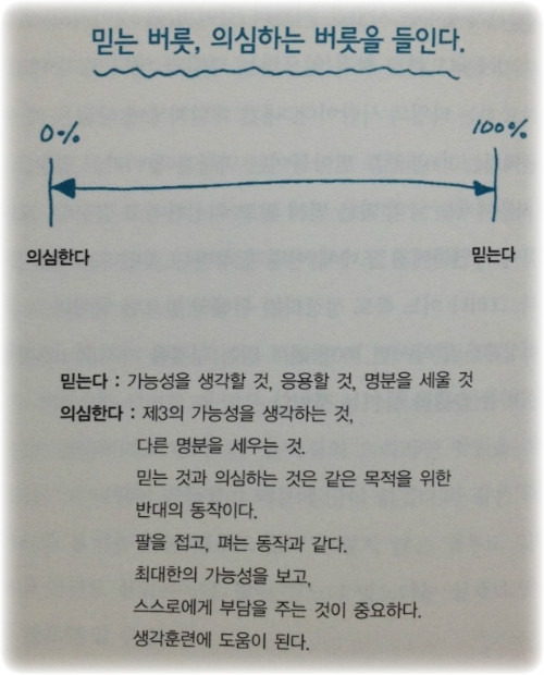 100퍼센트 받아들이는 것이 중요하다. 동시에 100퍼센트 의심하는 것도 필요하다.