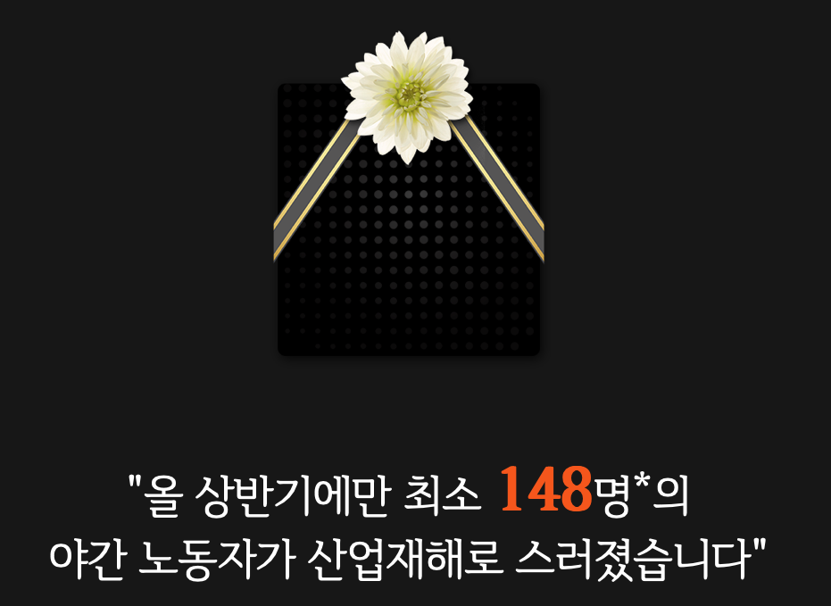 올 상반기에만 최소 148명의 야간 노동자가 산업재해로 스러졌습니다