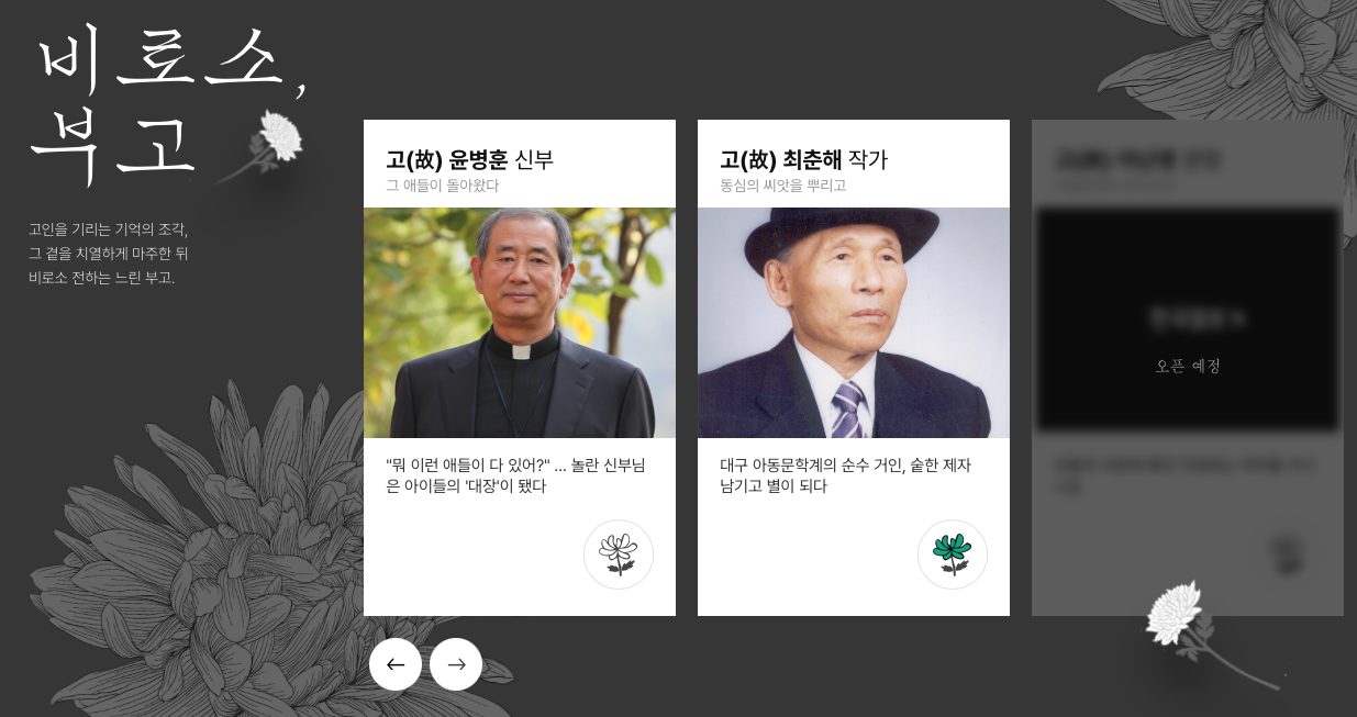 이는 죽음에 관한 이야기를 더 치열히 읽고 적어야 하는 이유다. 본보의 「비로소, 부고」 역시 이 치열함의 한 걸음이다.